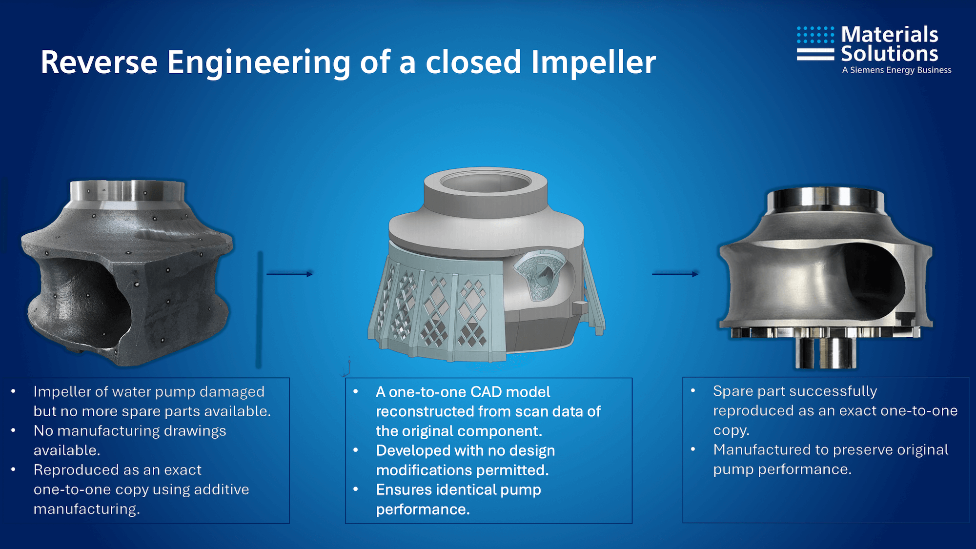 For sectors heavily reliant on operational continuity such as power generation, aerospace, and industrial applications, Materials Solutions additive manufacturing provides agile „spare parts on demand“ services. This capability drastically reduces lead times for critical spares, eliminates the need for extensive physical inventories, and mitigates supply chain disruptions. By leveraging digital blueprints and additive manufacturing, we can produce high-quality, certified replacement parts precisely when and where they are needed, ensuring maximal uptime and operational resilience for even legacy equipment.